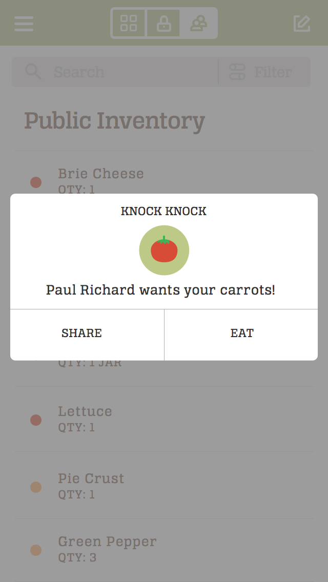 When Pantry Drop was first pitched as Corner Store, I was intrigued on how to bring the classic concept of "borrowing a cup of sugar from your neighbor" into the 21st century. Pantry Drop's pitch resonated with me was minimizing food waste through a food sharing network/community.