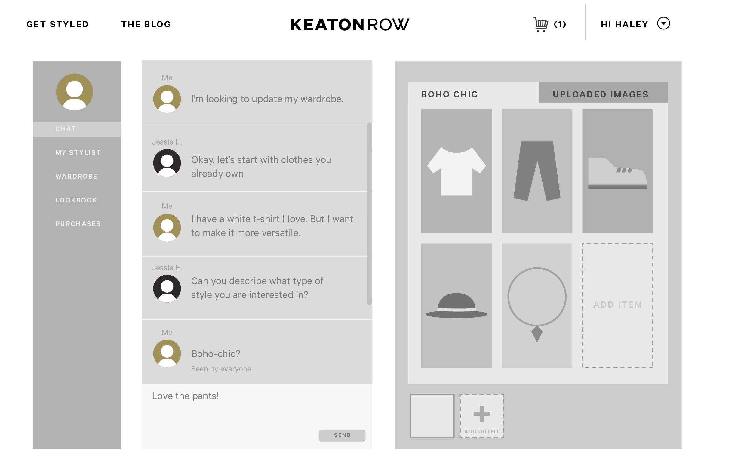 A 2-week collaborative project with Geoffrey Zabell for Keaton Row, an online personal stylist service to redesign the stylist and client relationship.